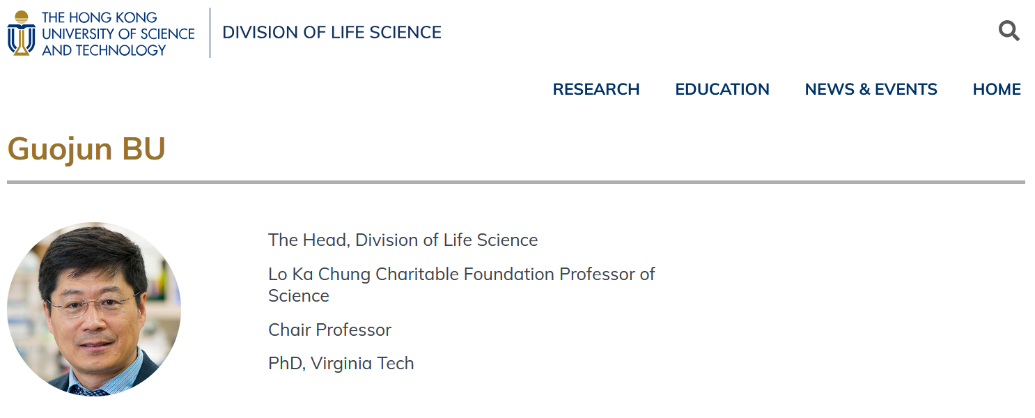 (卜國軍教授在香港科技大學官網(wǎng)介紹截屏)